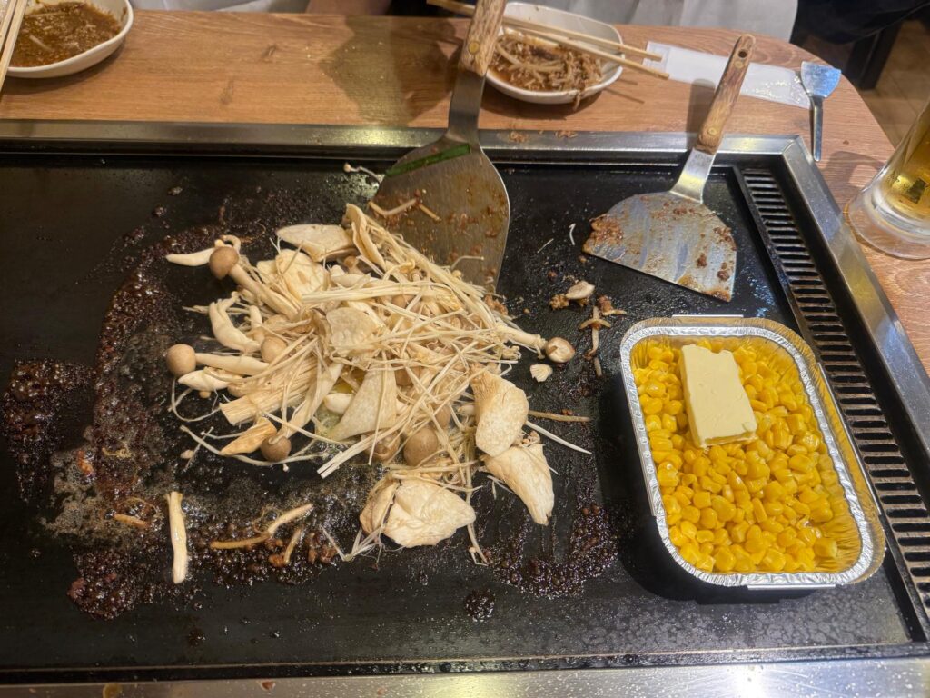 Weiter ging es durch Viertel vollgestopft mit kleinen Handwerkerlädchen, Kaffees und Geschäftchen für Second-Hand-Mode. Hier hätte ich echt Tage beim Wühlen und Entdecken verbringen können. Auch eine alte Einkaufspassage darf natürlich nicht fehlen. Der krönende Abschluss war dann das Abendessen. Unser studentischer Guide kam auf die Idee, uns in einen Laden zu führen, der sich auf Gerichte am Tischgrill spezialisiert hat. Und damit meine ich nicht das teure Teppanyaki, bei der ein ausgebildeter Koch auf einer heißen Platte tolle Gerichte zaubert. Nein, ich meine kleine Tische mit eingelassenen Grill und bestellen kann man nur rohe Zutaten. Den Rest, also das eigentliche Grillen bzw. Braten, muss man selber machen. Super lustig, super uhrig und ich selbst hätte nicht so ohne weiteres herausgefunden, wie das funktioniert.